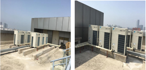 本項目空調選用大金VRV D系列中央空調室外機和大金智能感知環繞氣流嵌入式+中靜壓風管機;本項目新風選用大金VRV全新風處理機系統。大金VRV D系列最高IPLV值高達8.2,遠超國家一級節能標準;系統總管長可達1000m,室內外機高低差室外機在室內機上方最大可達50m,室外機在室內機下方最大可達90m,最大實際單管長165m。輕松對應超高層大樓。